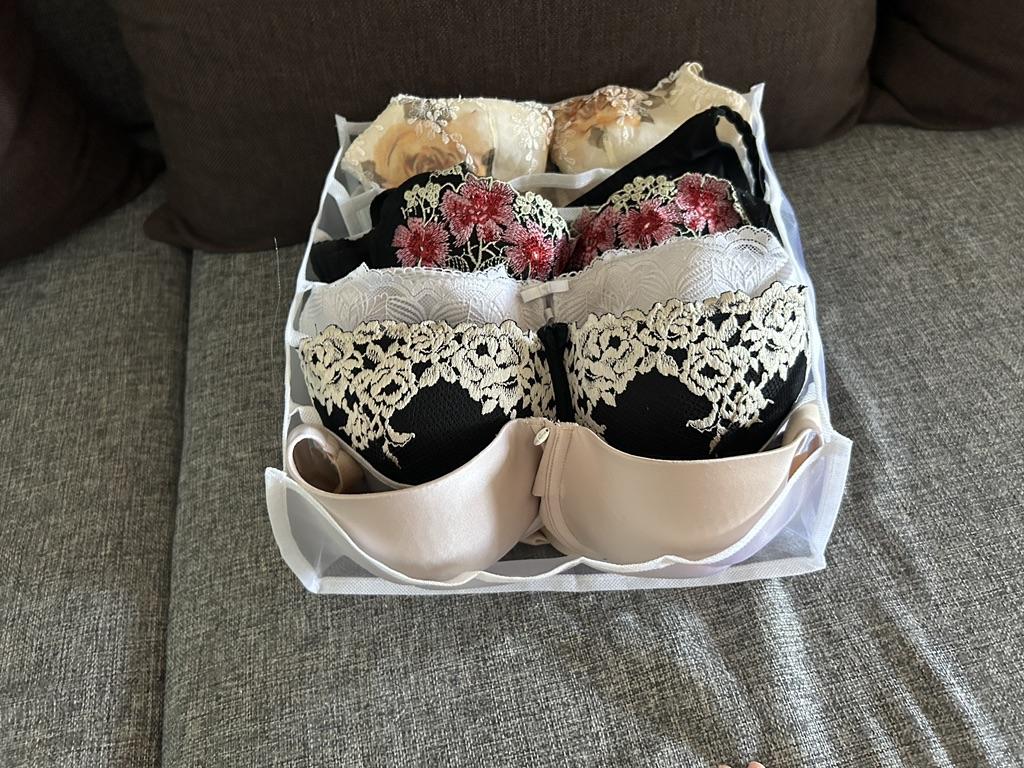 Je pekne zabalená, látková, nedrží tvar, ale nie je zlá, má 6 predelov, veľmi pohodlná na podprsenky