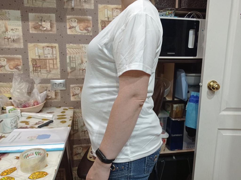 Vzal som si o číslo (alebo 2) väčšie. Pod tričkom je čierne tričko. Ak presvitá, je to len trochu. Je mäkký a príjemný na dotyk. Fotografia zblízka, zvnútra.