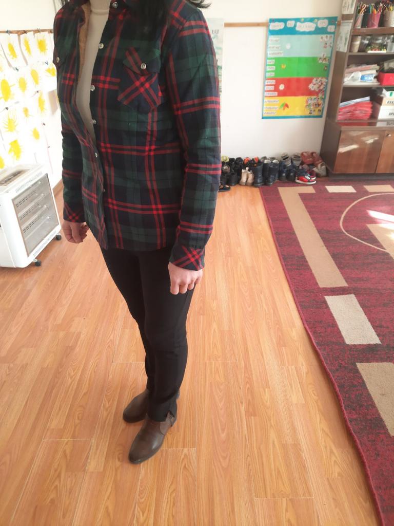Blúzka vyzerá pekne. Materiál je strečový, je ok. Veľkosť som si vzala M, aj keď nosím S. Blúzka je mi však veľká. Odporúčam vám vziať si svoju veľkosť, potom to bude v poriadku.