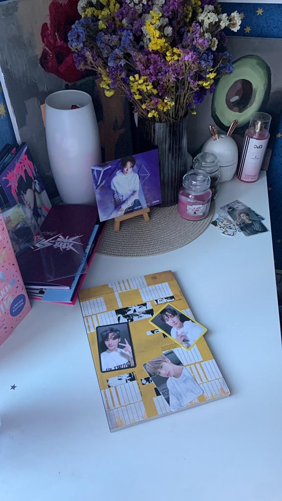 Album je skvelý, som spokojný) prisla na Ukrajinu asi za 3 tyzdne, bola dobre zabalena, nikde neposkodena, poslana novou postou, ako darcek bola teplovzdušná pištoľ🤭 vylosovali sa skvelé karty, presne to, čo Minhovi chýbalo🤧 Bini a Hyunjin sú trochu zlepení, majú stopy, ale to už nie je prekvapujúce, u starých albumov je to bežná vec