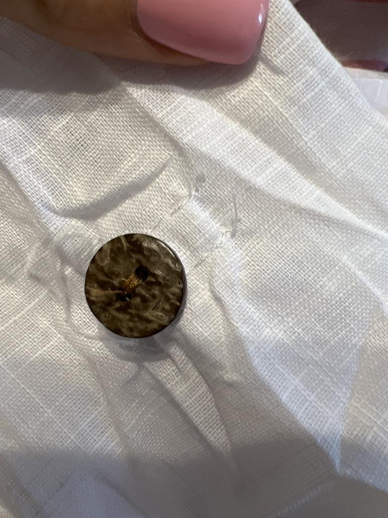 Svieži materiál veľmi podobný ľanu Gombíky nevhodné farebne, ale dobré