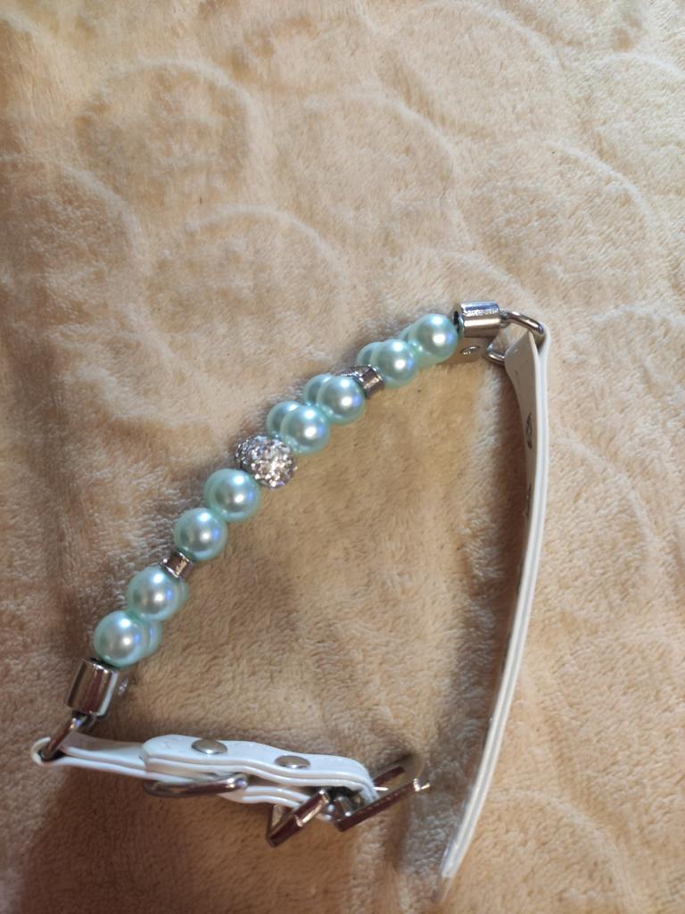 Veľmi pekný golier, kvalitný. Pre psa s hmotnosťou 4 kg, veľkosť M