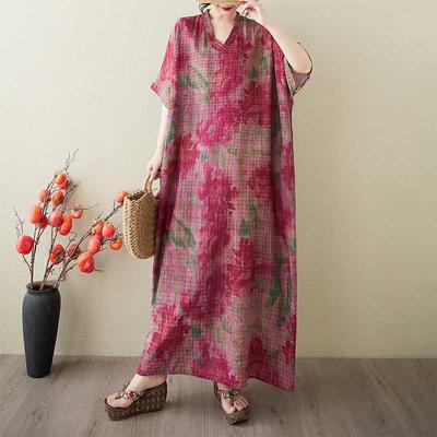 Dámske voľné šaty Vintage s potlačou Vreciek s dlhým rukávom Šaty s výstrihom do O
