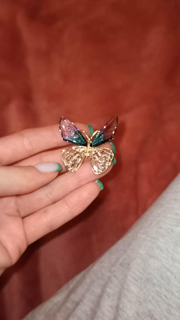 Veľmi jemná brošnička s motýľom.Je naozaj krásna.O mesiac dorazila do Španielska🇪🇸.Páči sa mi,je elegantná.