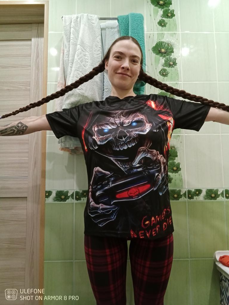 Zodpovedá fotke, príjemná látka na nosenie, ale príliš krátka. Obrázok na zadnej strane je však iný.
