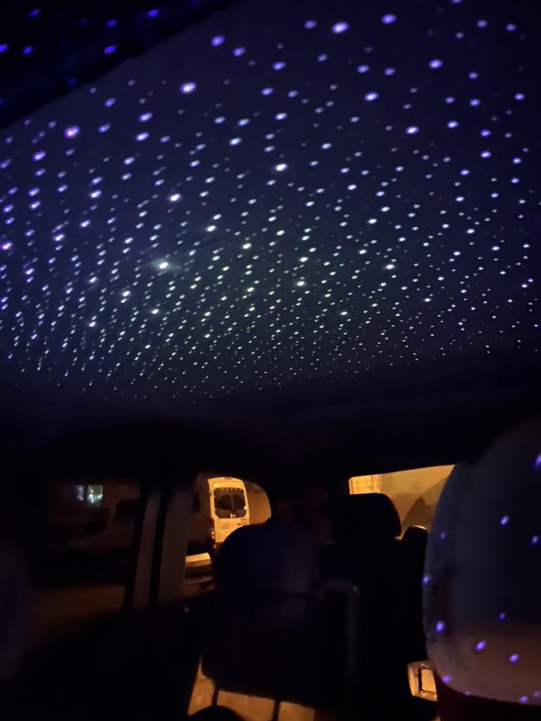 Veľmi nekvalitné, len pár svetiel na strope auta.