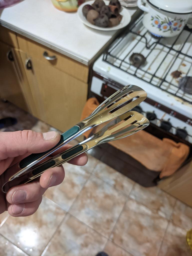 Extra dlhé kuchynské kliešte z nehrdzavejúcej ocele s plastovými rukoväťami. 🌺 Na výber boli tri veľkosti. 🤗 Rozhodol som sa pre najväčší! 🌭 Robustný a ideálne padne do ruky. 👍 Pre grilovaciu sezónu optimálny produkt! 😻 Doručené do 2 týždňov. 🚙 Tisíckrát ďakujem 💐