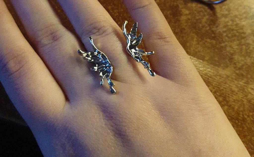 Prsteň prišiel zlomený, motýľ bol odtrhnutý od základne.