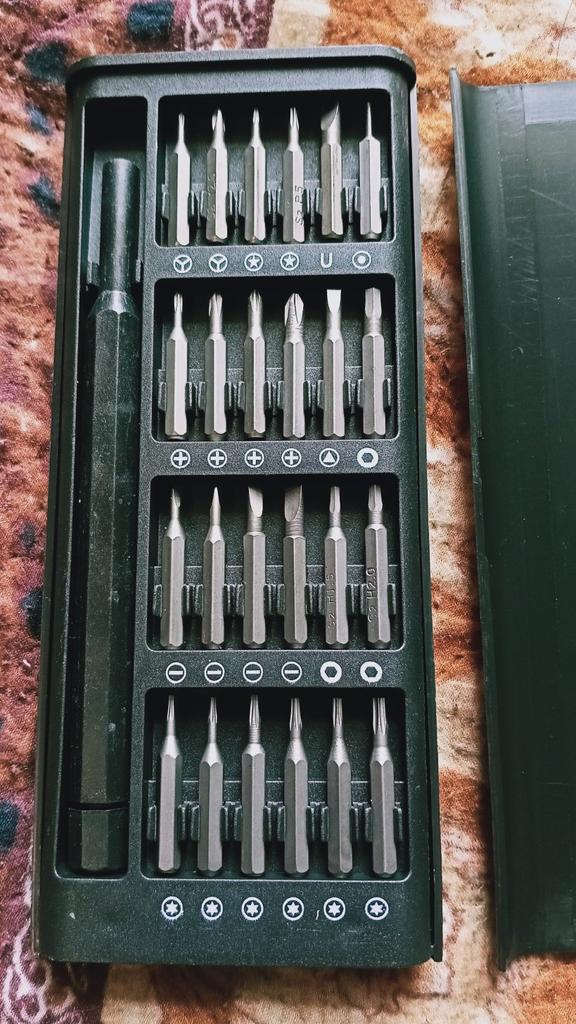 Krabička je veľmi pekná a kvalitná. Skrutkovač je plastový s magnetom na konci. Vrcholy sa mi zdajú dosť silné, ale uvidím časom