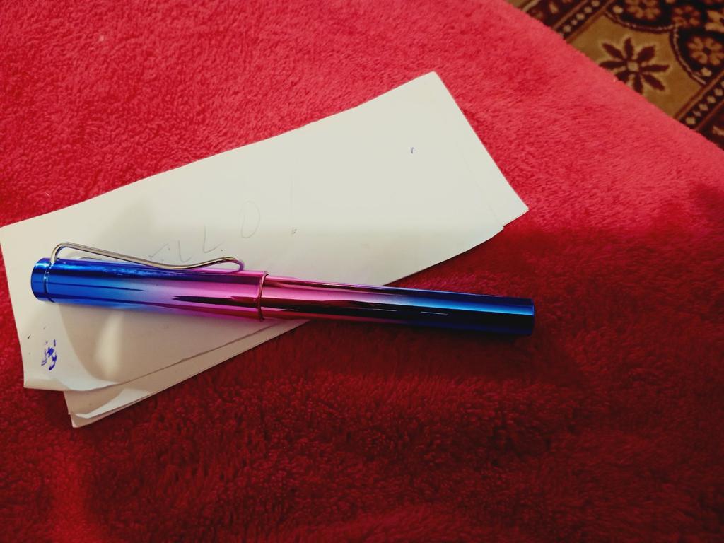 Je to pero, ktoré sa dodáva bez atramentovej náplne a je veľmi pekné (treba si dokúpiť samostatnú kazetu, malá biela trubička je vyrobená z gumy a označuje, kam mám vložiť kazetu, je pekná). veľmi rýchlo, za necelý mesiac do Španielska 🇪🇸
