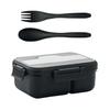 Ready to go? The Enviro lunch box has everything you need to enjoy your lunch on the road, at work or at school. A practical plastic box with a removable divider, a bamboo lid with a silicone ring to close it airtight and leak-proof and even a complete cutlery set with handy elastic to attach it to the box. The box is suitable for cold dishes such as a delicious sandwich or a crispy salad. But did you know that you can also put this box in the microwave? This way you can easily heat up the meals you bring from home. For example, take that leftover pasta that was left over from the night before. In addition, the box is even suitable for the freezer. It has a size of 19.5 cm x 12 cm x 7 cm and a capacity of 1 litre.