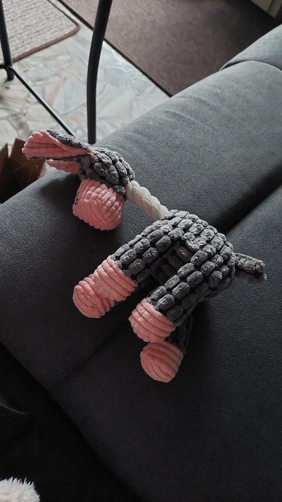 Skvelá hračka. Moja francúzština to ocenila))) Látka je dosť hrubá, má veľa výbežkov (rohy, uši, labky, chvostík) a má aj piskot. 5 z 5!