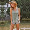 Fashion Summer Sleeveless Cardigan Vest Shirt For Women Loose Elegant Top Solid Buttons Blouse Casual V Neck Clothing 25590