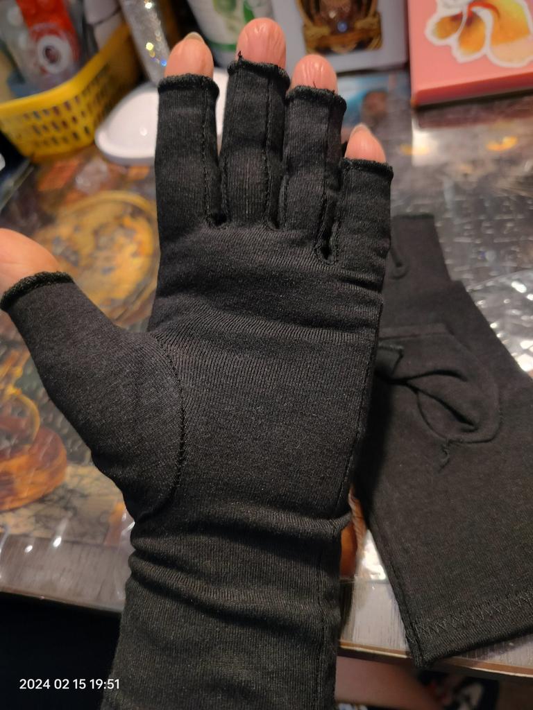 Prijatie objednávky trvalo 25 dní, nie dlho Všetko dobre zabalené, objednal som si kvalitné rukavice, veľkosť L, dobre padnú na ruku, konce prstov sú otvorené. Keď si na ruky nasadíte rukavice, cítite nejaký terapeutický účinok. Uvidíme, ako budú použité.