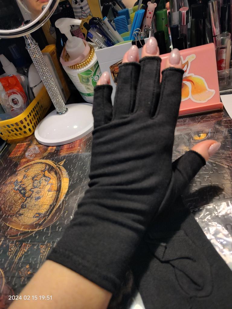 Rukavice sú pohodlné. Zmierňujú bolesť. Predtým som si kúpila veľkosť M, sú dobré, ale chcela by som ich tmavšie. Teraz som si kúpila veľkosť S. Sú presne akurát.