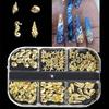 Zlaté nail art zliatiny cvočky Prímorské 3D dekorácie Morská mušľa Hviezda perie Kúzlo Kovový rám Nity Flitre na nechty