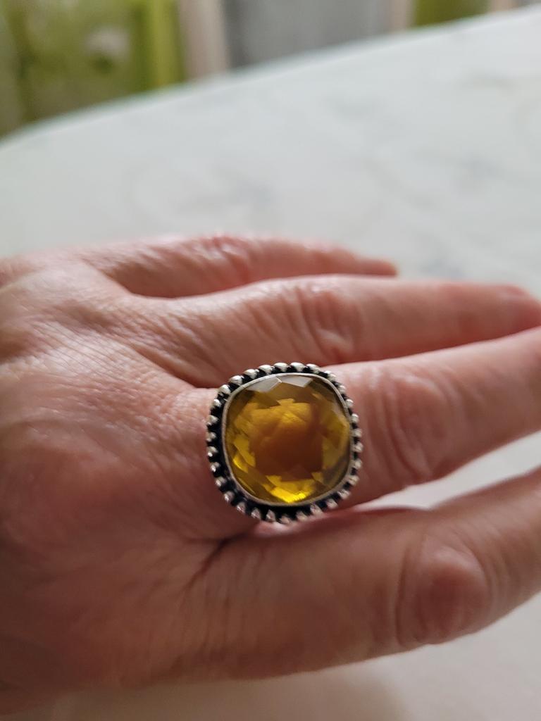 Veľmi krásny prsteň s drahokamom citrín z pravého striebra 925. Farba kameňa je ako na obrázku, veľkosť je perfektná. Proste nádhera 👍🏻👍🏻👍🏻.