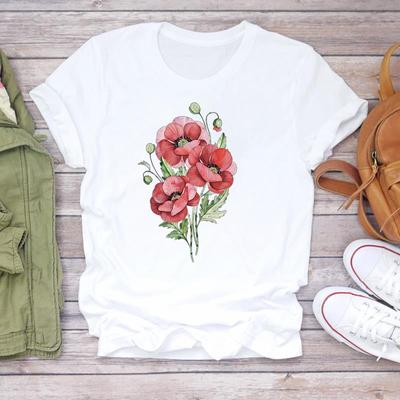 (Asian Size) Tee Top Woman Female Short Sleeve Clothing Flower Cute Style Print Fashion Graphic T-shirts 90s Women T Shirt