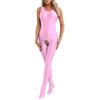 Womens Solid Color Full Body Bodysuit U Neck Sleeveless Footed Hole Jumpsuits Glossy Stretchy Unitard Bodysuits