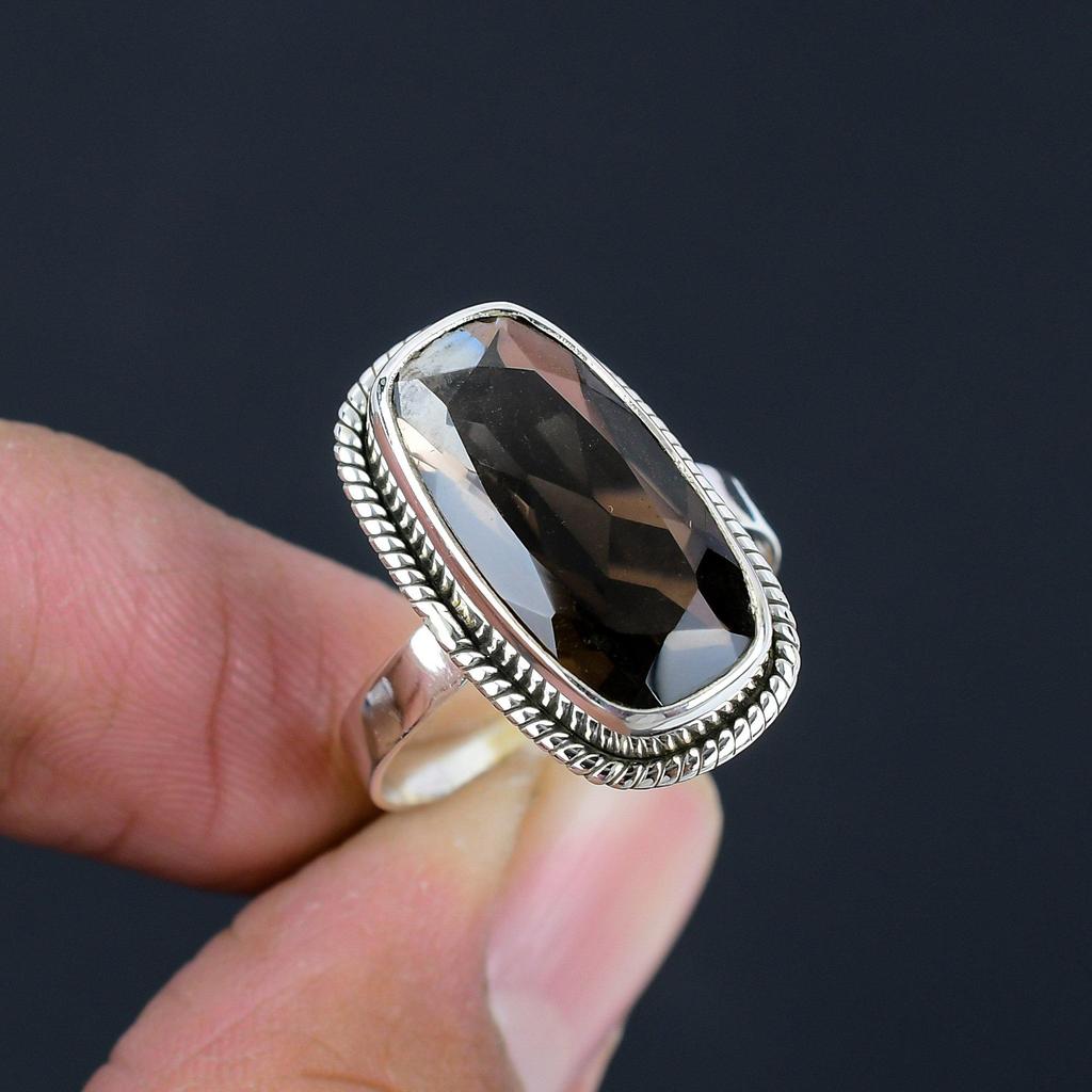 Fazetovaný drahokam Smoky Quartz ručne vyrábaný masívny prsteň z 925 mincového striebra