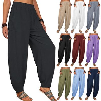 Women Casual Cotton linen Harem Pants Solid Wide Leg Trousers Loose Long Pants Summer Vintage