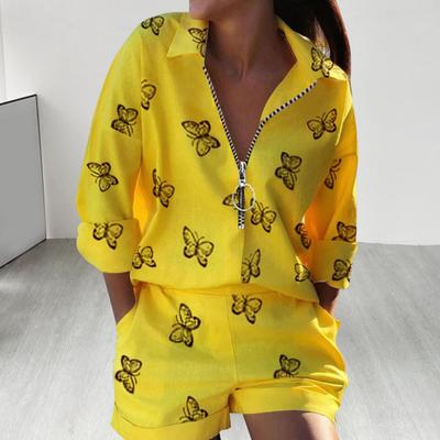 Letná móda Ležérne Dámske Dvojdielne Polo súpravy Potlačené Zips Vrecko s dlhým rukávom Športový oblek Plážové oblečenie
