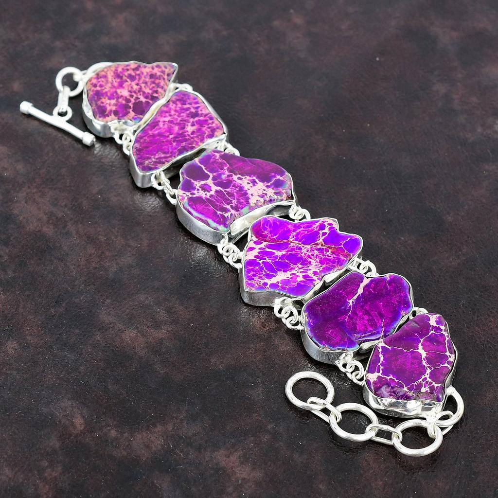 Purple Sea Sediment Jasper Bracelet Real Gemstone Jewelry 925 Sterling Silver Bracelet Adjustable Chain Bracelet Handmade Bracelet For Gift