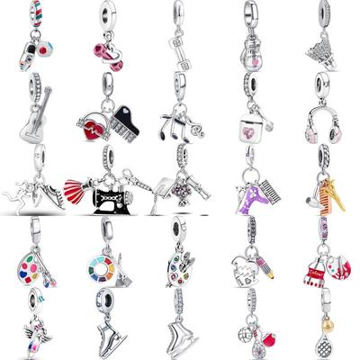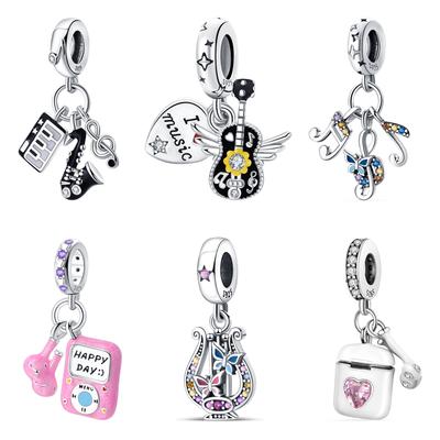 925 Sterling Silver Gitara Bohatá náhlavná súprava Prívesok Prívesok Fit Originálny módny náramok Prívesok s korálkami Náhrdelník Diy Dámske šperky