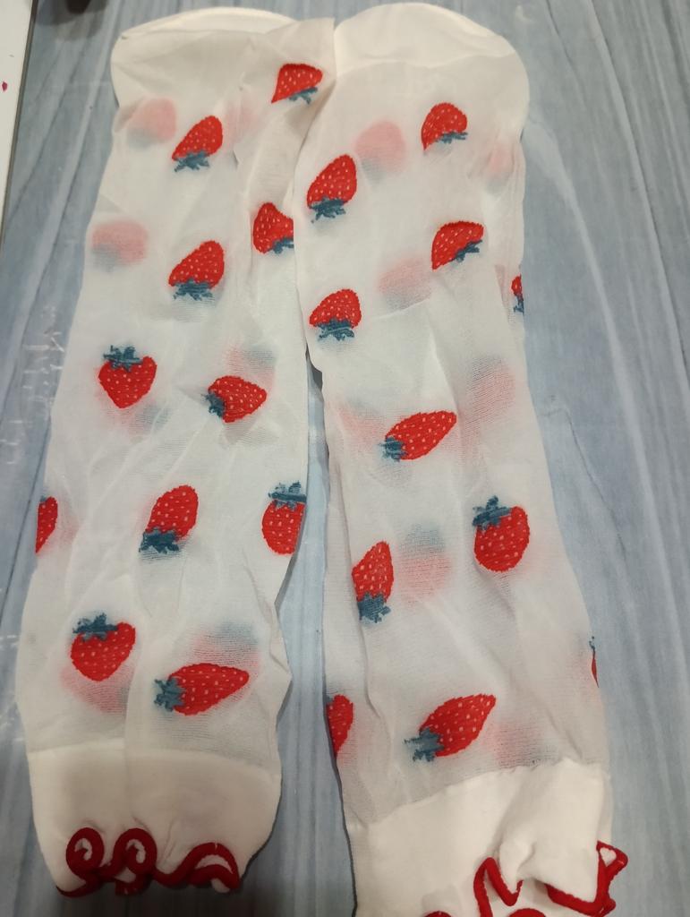Dámske roztomilé sieťované volánové ponožky hodvábne ponožky s krásnym ovocným vzorom priehľadné tenké trendy vtipné