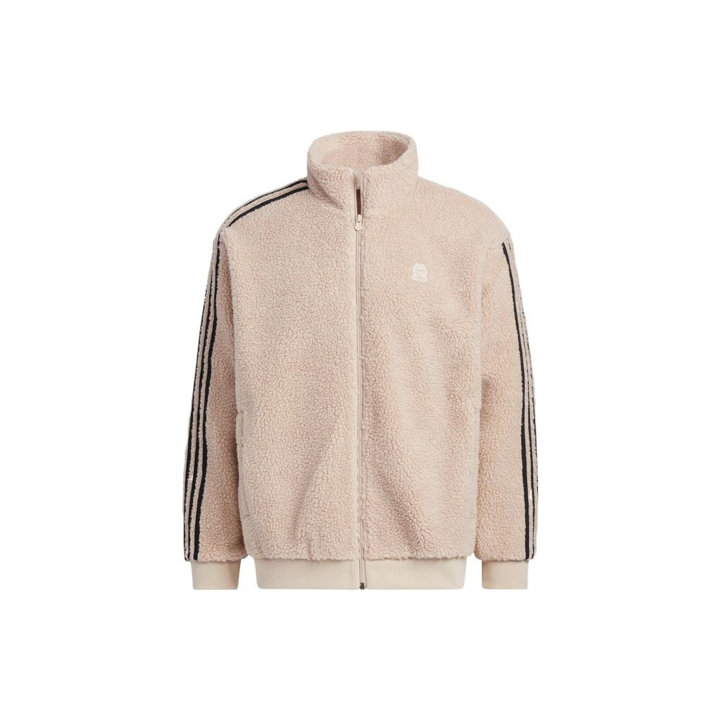 Adidas Neo Striped Sport Fleece Jacket Unisex Outerwear Grey Brown HY2684