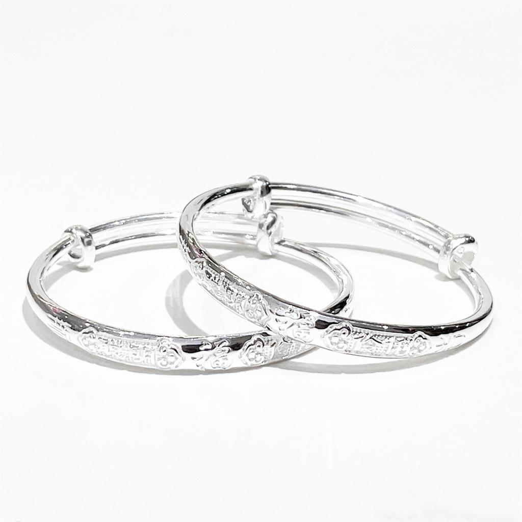 Zuyin 999 Pure Silver Annual Safety Push-pull Children's Bracelet with Intelligent and Auspicious Characters