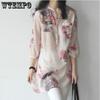 Spring Shirt Korean Temperament Printing Loose Long-sleeved Stand-up Collar Shirt Female Floral Shirt Mid-length Blouse
