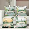 Wooden Chair Back Pillow, Tatami Bedside Pillow, Office Nap Pillow, Chinese Style Landscape Painting Pillowcase