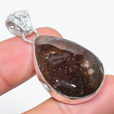 Tube Agate Gemstone Handmade 925 Silver Plated Jewelry Pendant 2.08"
