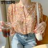 Jarná a jesenná dámska košeľa Ľahká fragmentovaná šifónová košeľa Malá košeľa v západnom štýle s dizajnom Všestranná košeľa s dlhým rukávom