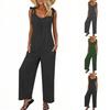 Ležérne voľné kombinézy so sexi véčkovým výstrihom, širokými nohavicami bez rukávov.