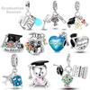 S925 Sterling Silver Graduation Season Charms Beads Bachelor Cap Suitcase Airplane Dangle Fit Original Bracelet Jewelry