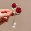 Red rose, pearl, tassel, small claw clip, half pierced top clip, high ponytail clip, white lotus claw clip