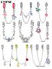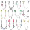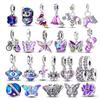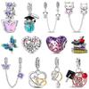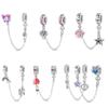 S925 Sterling Silver Lovely purple Charms Cat dog butterfly Flower Safety chain Dangle Pendants Fit Original Bracelet DIY