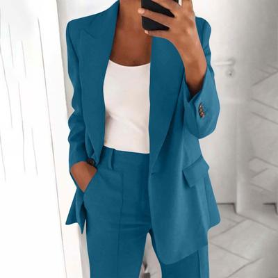 Dámske dvojdielne biznis oblečenie s vrúbkovanou klopou, sako na jeden gombík, elegantná súprava saka a nohavíc, ležérny pracovný set do kancelárie