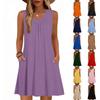 Women's Summer Sleeveless Dress Casual Loose V-neck Tank Top With Pockets