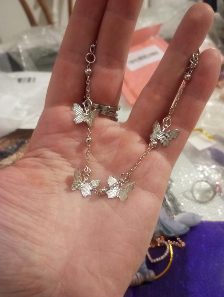 Náramok s motýľmi vyzerá originálne. Vďaka retiazkovej rezerve ju môžete nosiť na ruke alebo na tenkej nohe.