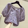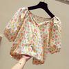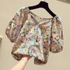 Móda Dámske Gombíkové Nafúknuté Krátke Rukávy Štvorcový Golier Potlačené Dámske Topánky Košele