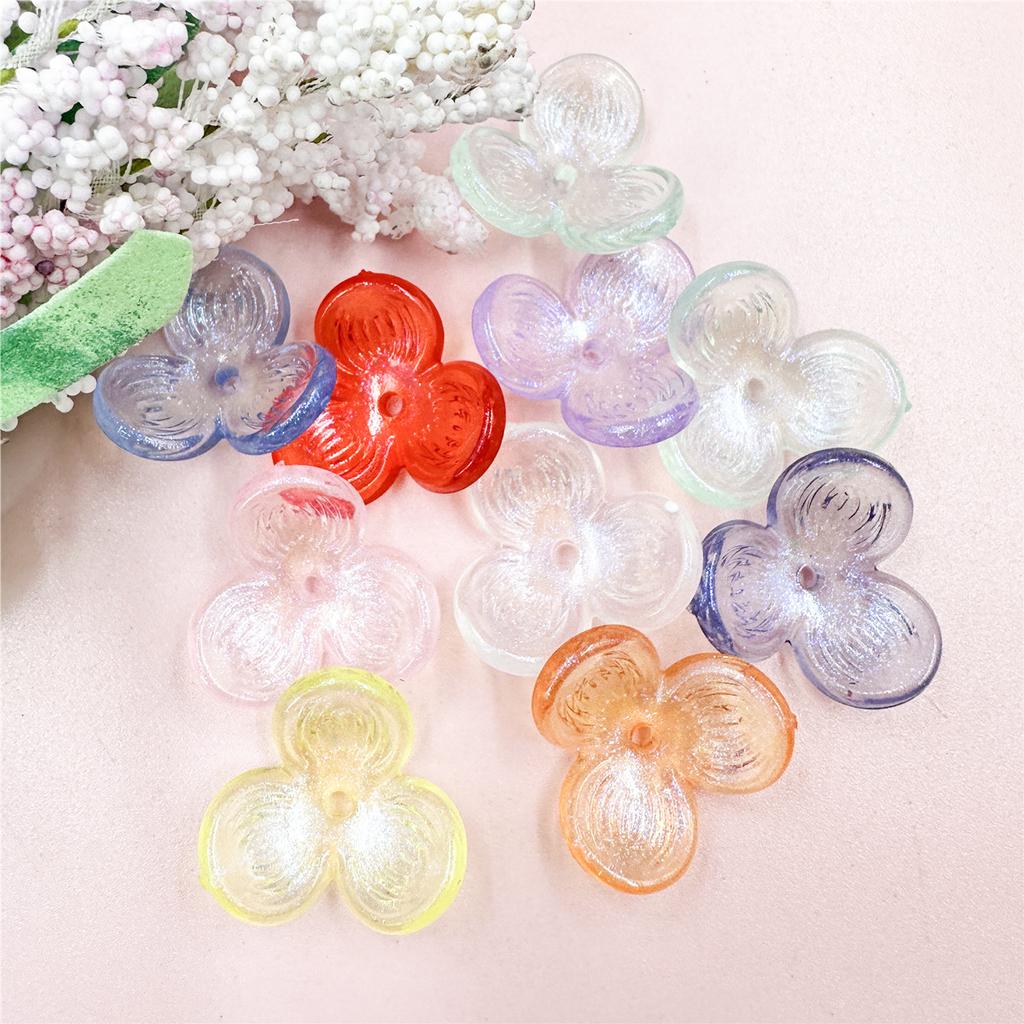 Acrylic 10pcs Hairpin Accessories Mobile Phone Chain Beads 22.6mm Hollowed Out Straight Hole Three-petal Flowers Beaded Handmade