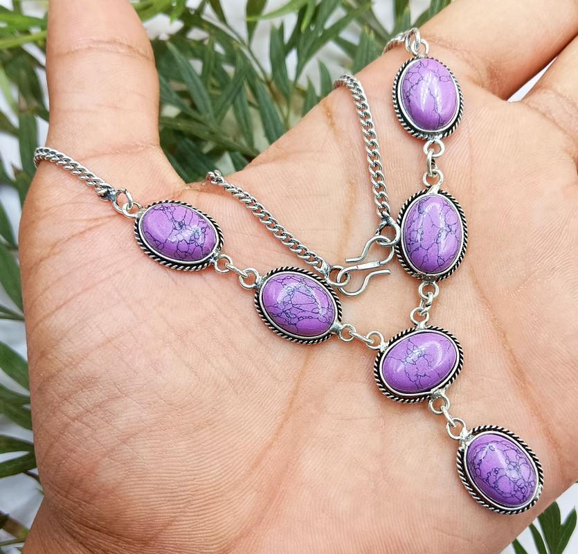 Purple Turquoise Gemstone 925 Sterling Silver Plated Unisex Fashion Necklace SH-17