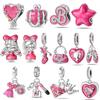 100% 925 Sterling Silver Fashion Princess Pink Bow Charms Beads Fit 925 Original Bracelets DIY Jewelry Anniversary Gifts