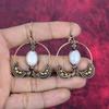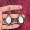 Náušnica z mesačného kameňa dúhového farbami Náušnice omotané medeným drôtom Starobaltické medené šperky Ručne vyrábané náušnice z drahokamov Šperky omotané drôtom Darček pre ženy