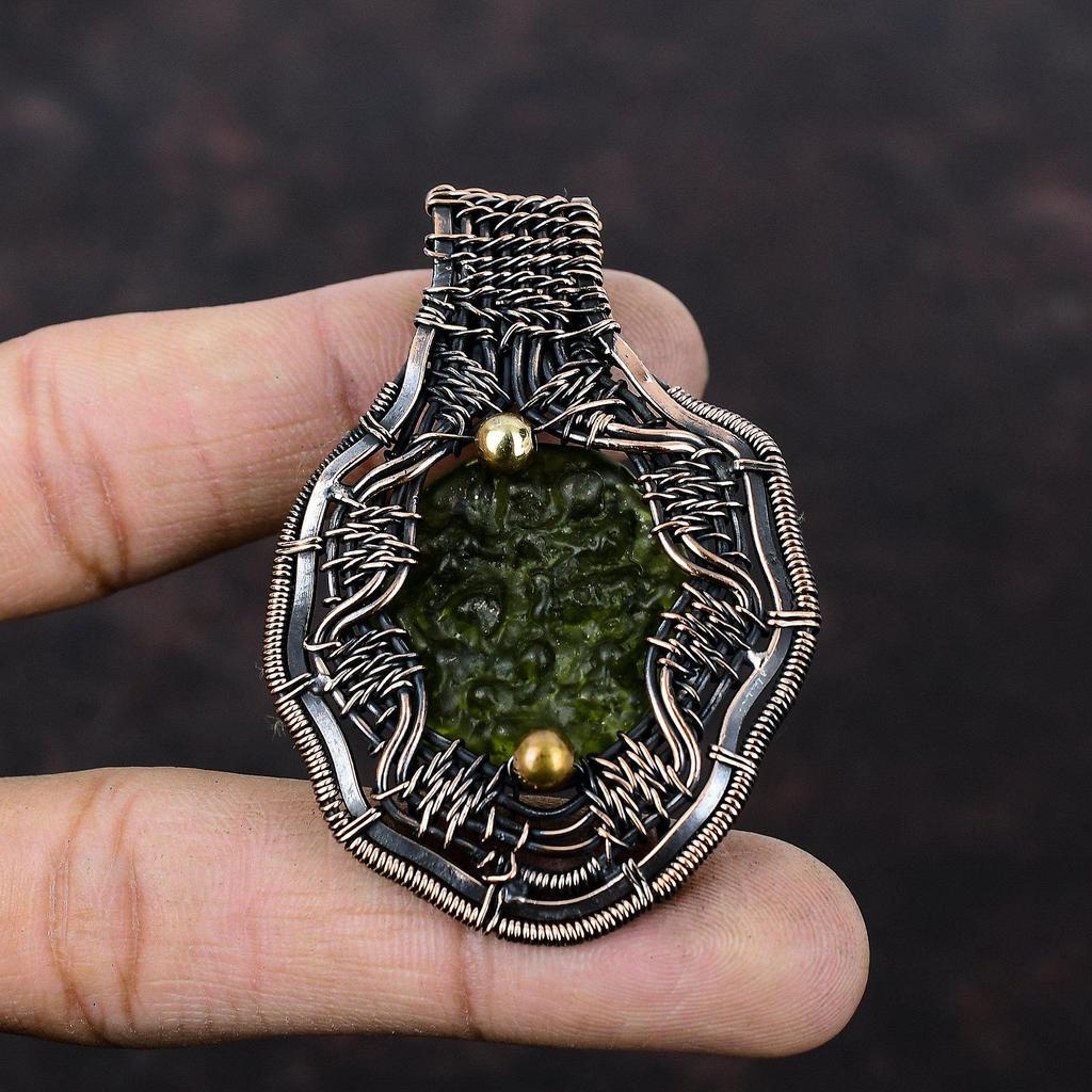 Moldavite Pendant Copper Wire Wrapped Pendant Handmade Jewelry Genuine Gemstone Pendant Gift For Mother Copper Wire Jewelry Designer Pendant