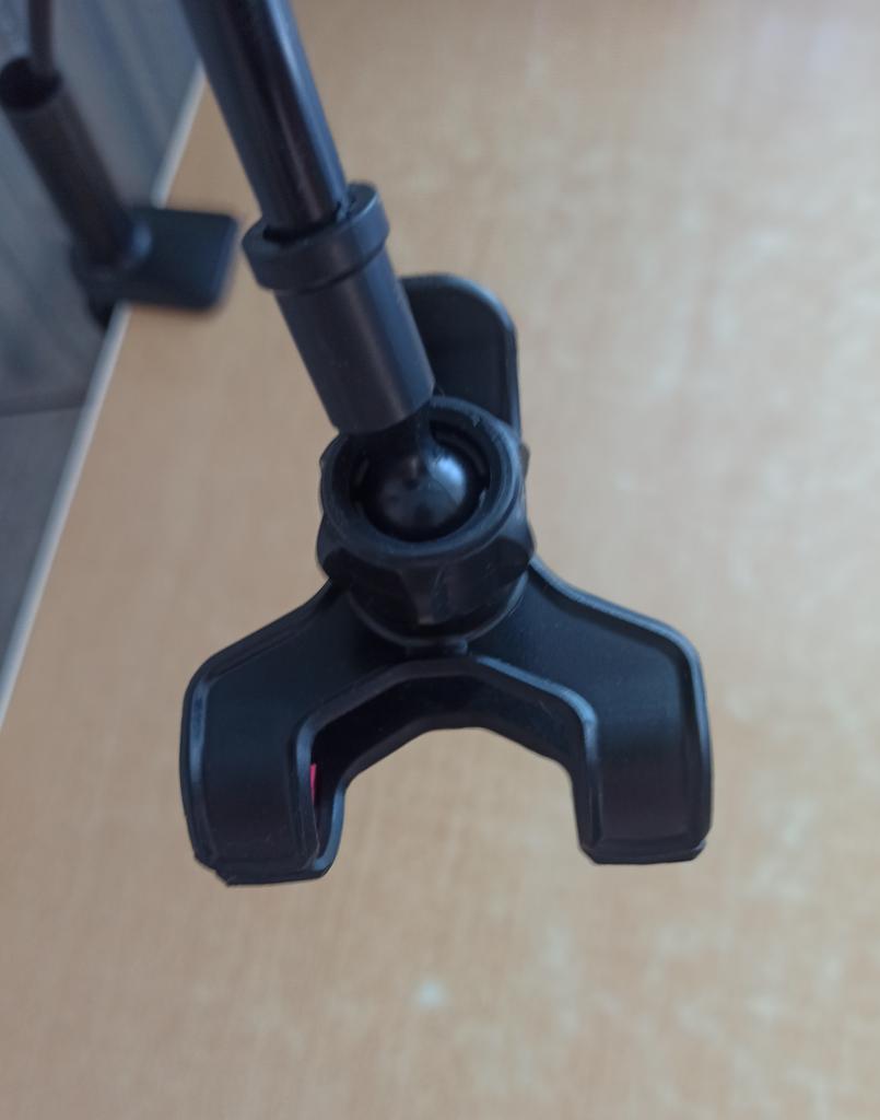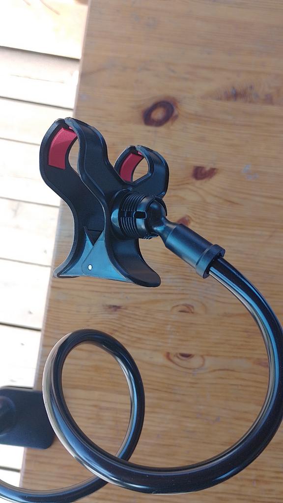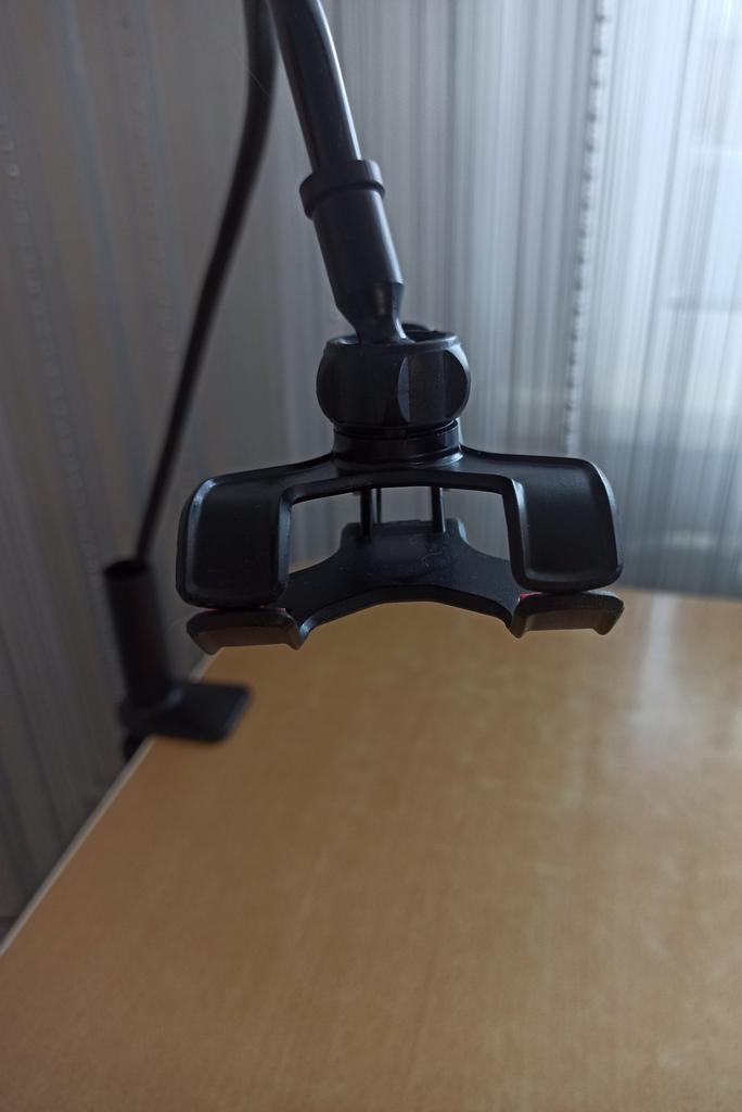 Dobrý držiak na mobil. Možno pripevniť na akýkoľvek stôl, stoličku,