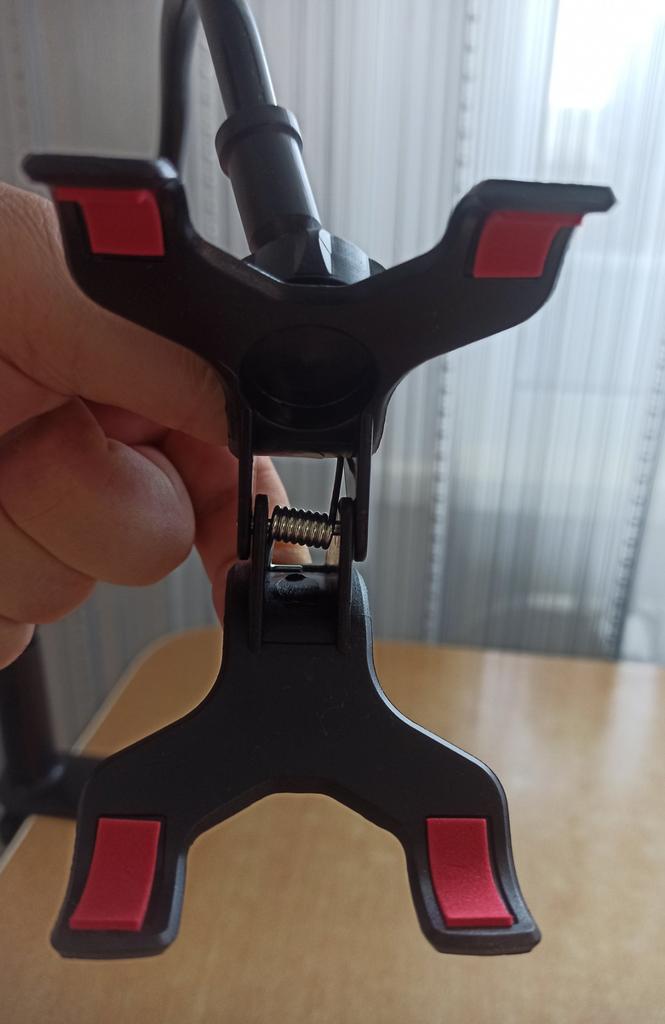 Dizajn podpory pre smartfón je zaujímavý. Ale... oporná tyč nie je veľmi pevná - ohne sa, ak ju nastavíte bližšie k vodorovnej čiare...
